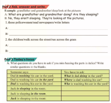 教師(shī)根據課本知識點,對課标詞彙進行(xíng)一問一答的(de)形式練習(xí),并做到(dào)舉一反三。在此教學法中,通過Part1部分(fēn)的(de)練習(xí),教師(shī)不僅幫助學生們擴大(dà)了詞彙量,而且通過造句練習(xí)強化了學生們的(de)寫作訓練。