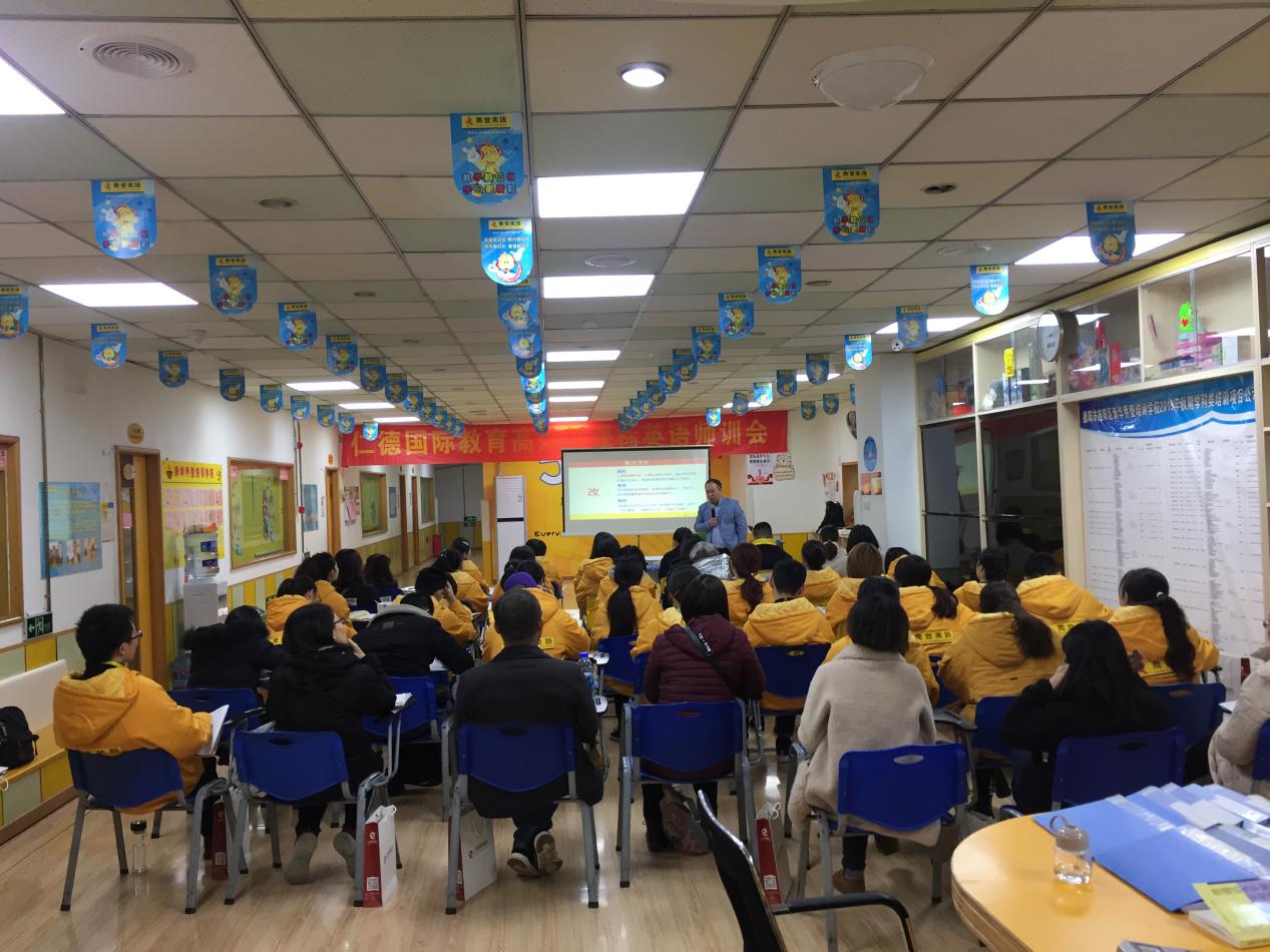 2019年11月(yuè)27日---28日,爲打造精品培優幼小(xiǎo)銜接課程,北京東方仁德國際教育走進四川德陽喬登美(měi)語,開(kāi)展了一場(chǎng)爲期兩天的(de)高(gāo)校(xiào)翻轉課堂師(shī)訓會(huì)。參加本次培訓會(huì)議的(de)有(yǒu)東方仁德國際教育教金(jīn)牌講師(shī)郭磊校(xiào)長,喬登美(měi)語33位英語老師(shī)以及四川周邊城市學校(xiào)校(xiào)長老師(shī)們。