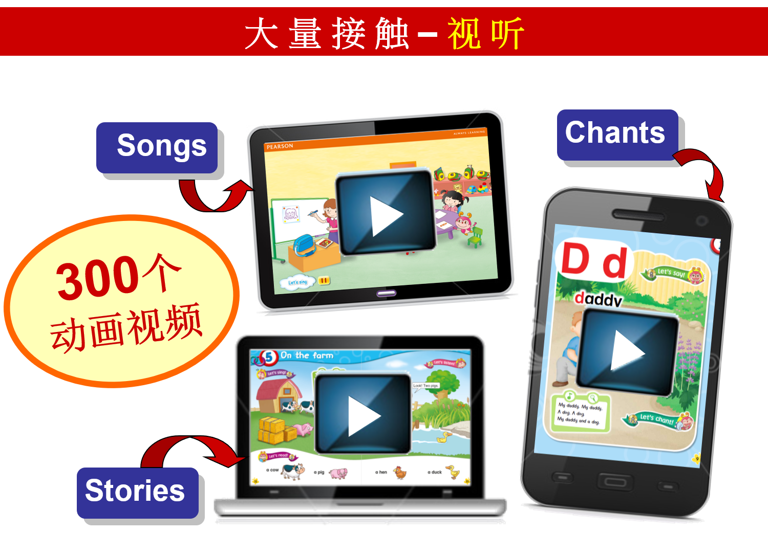 漸進式教學體系,通過大(dà)量接觸、理(lǐ)解運用(yòng)和(hé)拓展學習(xí),從根本上(shàng)解決孩子們英語學習(xí)的(de)量度、頻度和(hé)廣度的(de)問題,讓英語學習(xí)真正成爲母語學習(xí)。