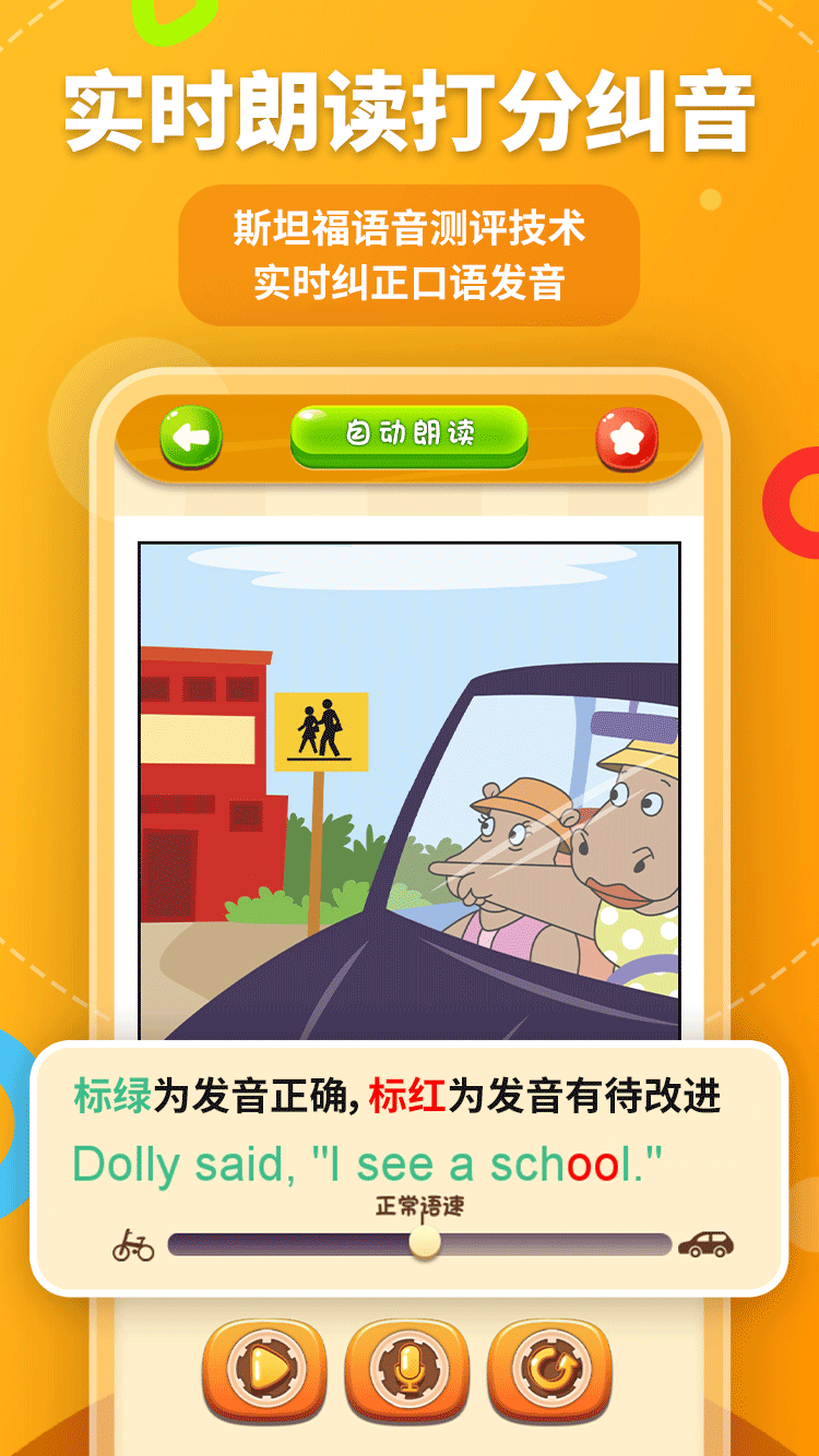美(měi)式分(fēn)級閱讀(dú)中所有(yǒu)原版圖書(shū)資源均與 SRI 的(de)口語評估體系和(hé)打分(fēn)模型相(xiàng)結合,能(néng)夠精準地(dì)評估孩子英語口語的(de)地(dì)道程度,提供精準到(dào)音(yīn)素的(de)語音(yīn)測評反饋,幫助孩子練就純正發音(yīn)。