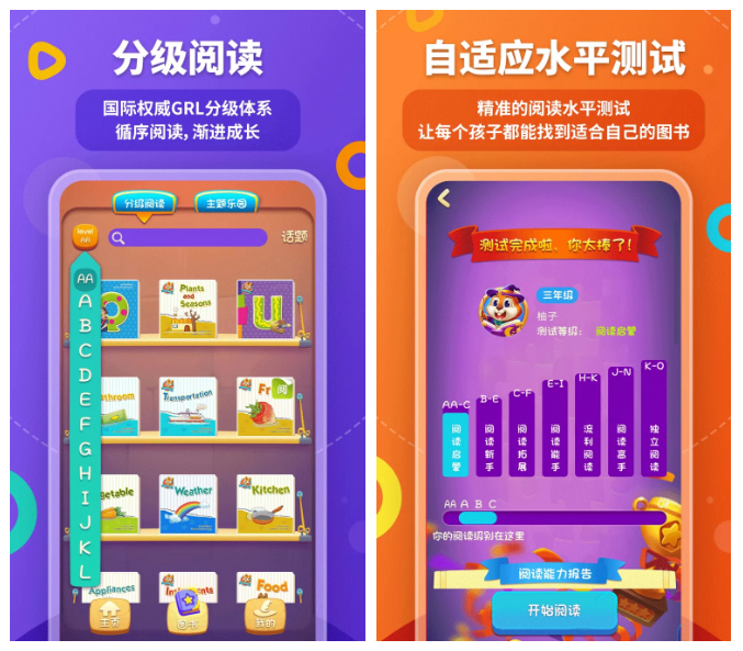 孩子在初次試用(yòng)美(měi)式分(fēn)級閱讀(dú)時,會(huì)做一套自适應英語水(shuǐ)平測試,每個(gè)孩子都(dōu)能(néng)根據測試結果,找到(dào)适合自己閱讀(dú)水(shuǐ)平的(de)圖書(shū)。