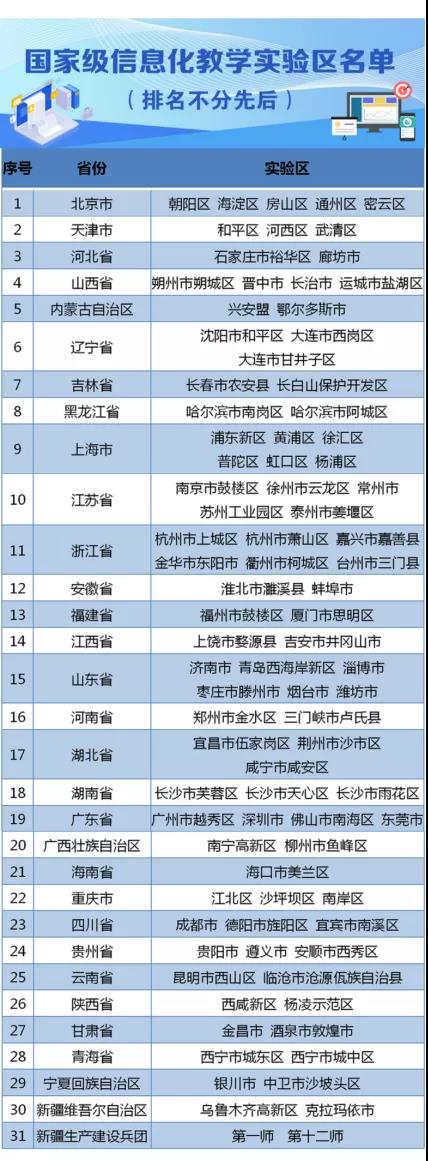 日前,教育部公布了“基于教學改革、融合信息技術(shù)的(de)新型教與學模式”實驗區名單(簡稱“國家級信息化教學實驗區”)。【完整通知及名單見文(wén)末】
